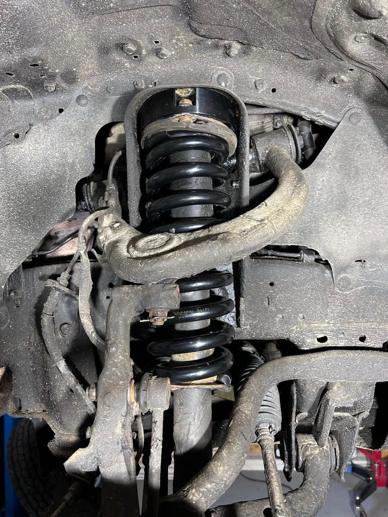 Den här bilen känner ni väl igen? Tobbe lämnade in sin Toyota Hilux för några veckor sedan för en montering av höjnings-distanser fram. Då upptäckte vi att fjädrarna hade gått av på ändvarvet. Nya fjädrar från Lesjöfors beställdes och idag monterades de. Nytt och fräscht – redo för besiktning!