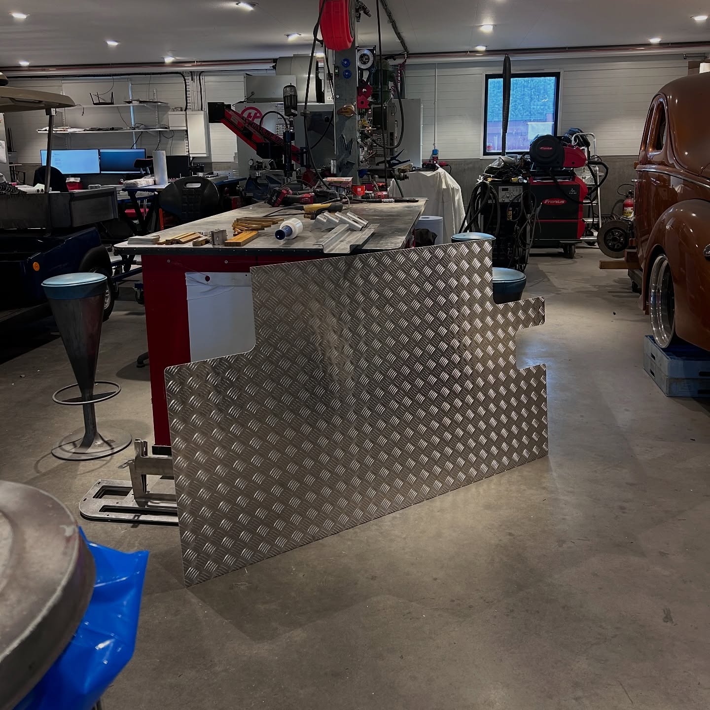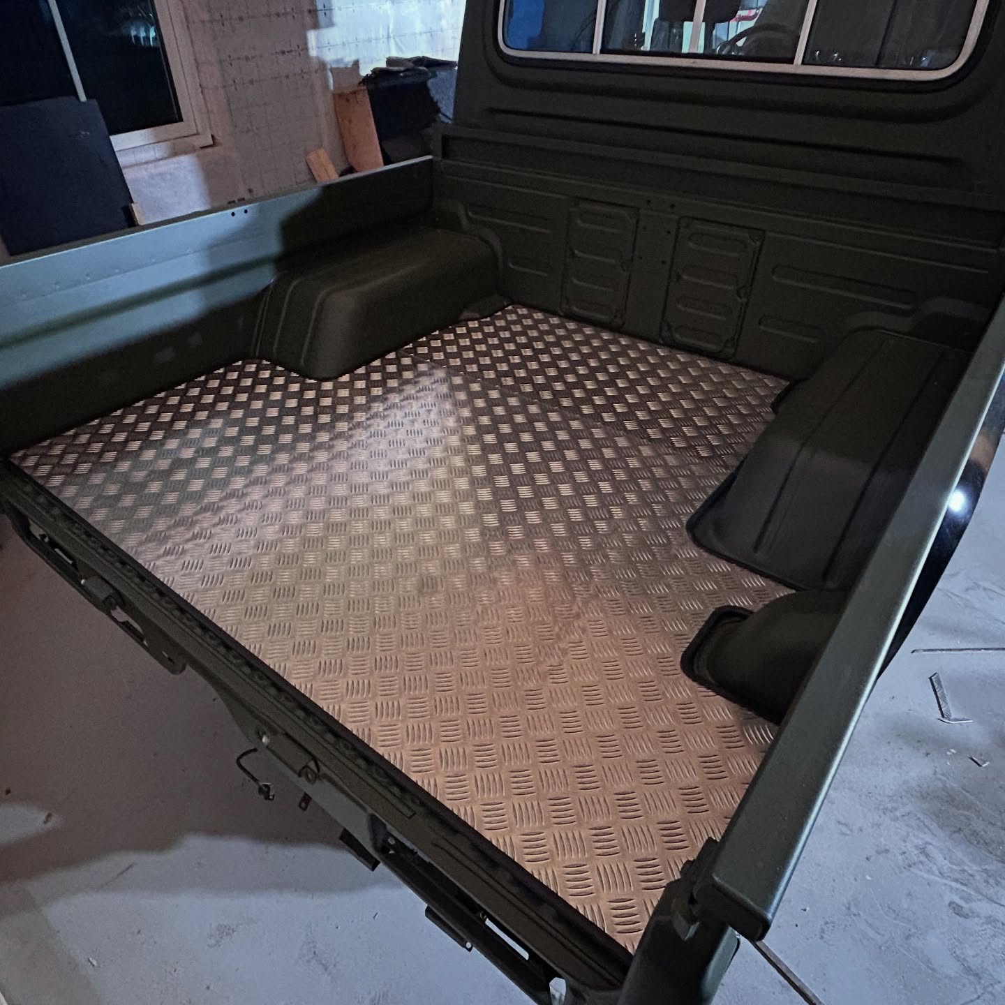 Vi har designat och skurit ut ett slitskydd i aluminium durkplåt för Toyota Landcruiser 79. Med detta robusta skydd kan kunden lasta i princip vad som helst utan att skada flaket. Tillsammans med lastöglor som bultas genom golvet blir det enkelt att säkra lasten, även vid extrem körning.