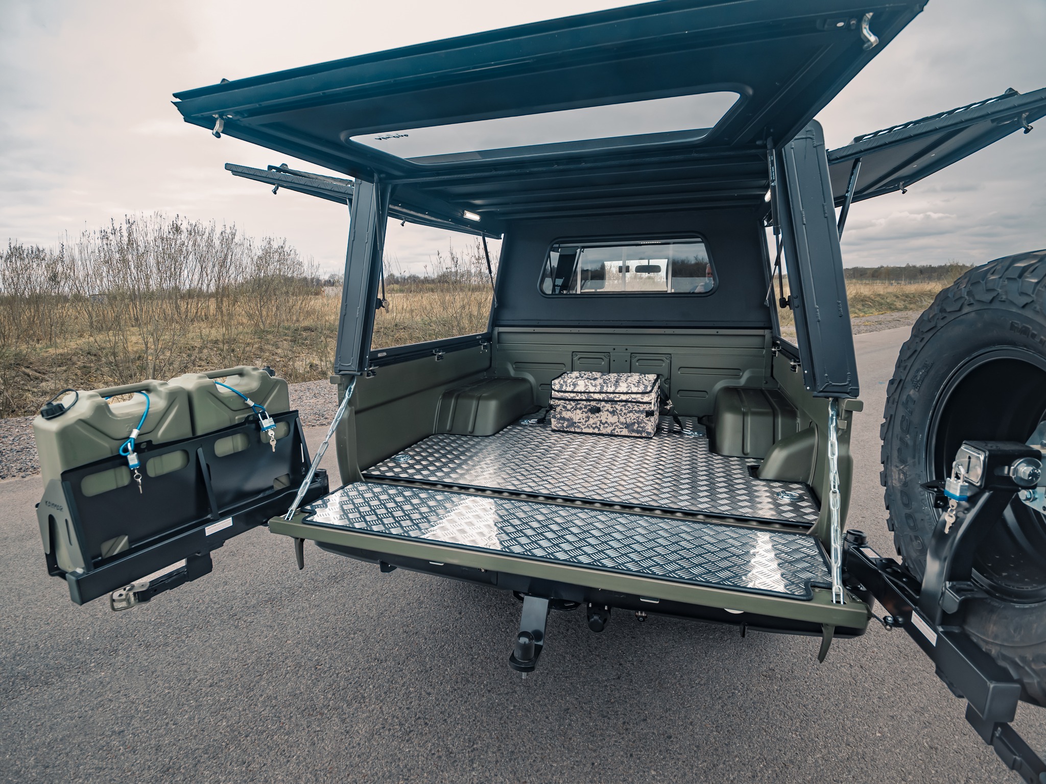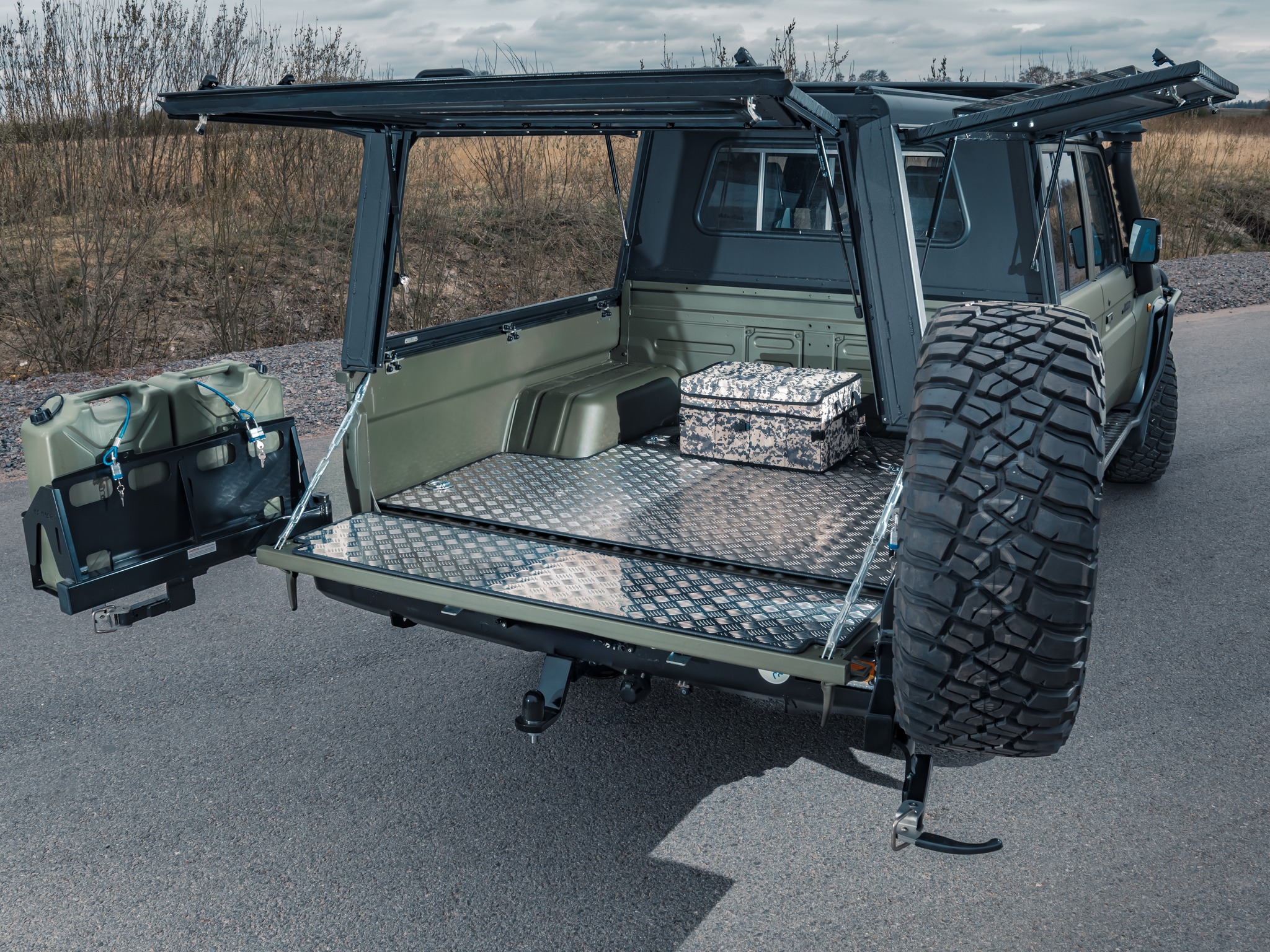 Takräcke och molle-paneler på sidan ger möjlighet att utrusta Landcruisern efter önskemål.